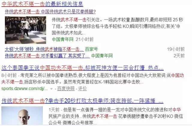 各网媒体纷纷跟进,一下子把“中华武术”推向风口浪尖,这场比赛甚至都打上了“民族自尊心”标签,关系到了中华传统武术的兴衰存亡。
