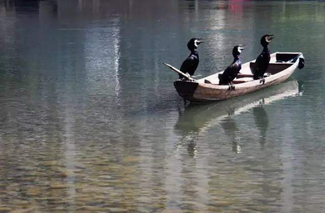 其中一考生的答案得到了徽宗的赞赏,他在船尾画出了一个站立的水鸟。有点像这幅图 ▼
