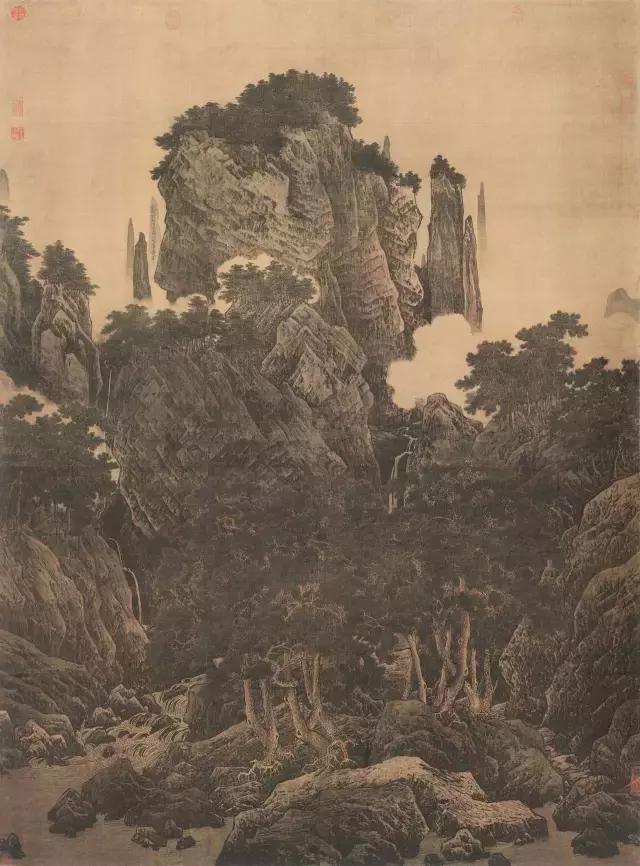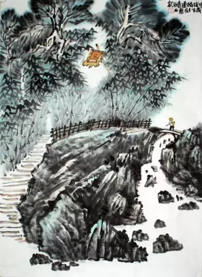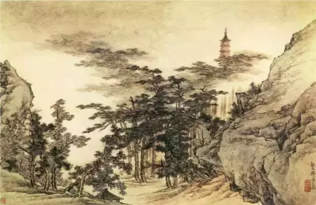 此画一下子表现“深山藏古寺”的含蓄深邃境界。构思巧妙,满分!