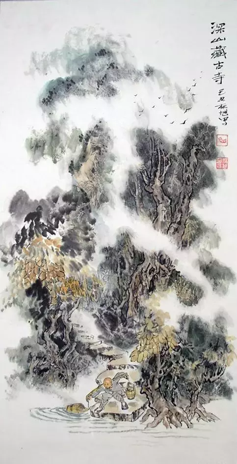 画中的古寺要“藏”起来,而且还要让人觉得它是存在的。