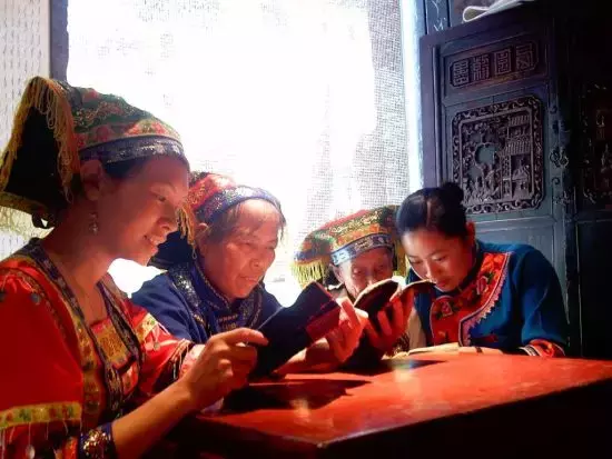 没有规范的教材,没有正规的教师和学校,女人们常常聚在一起,一边做女工,一边唱读、传授女书,这种唱习女书的活动被称作“读纸”“读扇”“读帕”,形成一种别具特色的女书习俗。