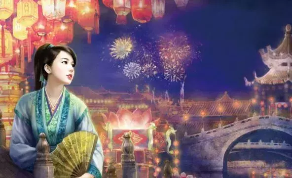 一轮明月下,大街小巷布满各种彩灯,到处是欢快的人群,歌舞升平,好不繁华热闹。