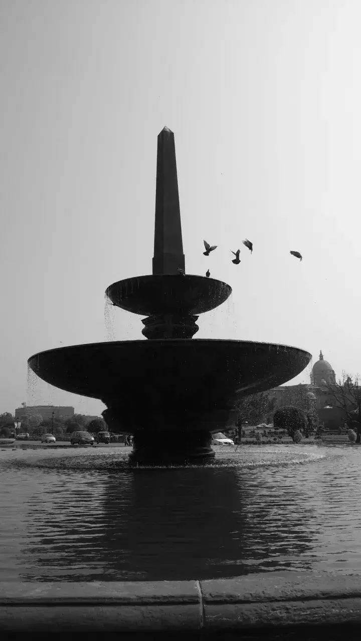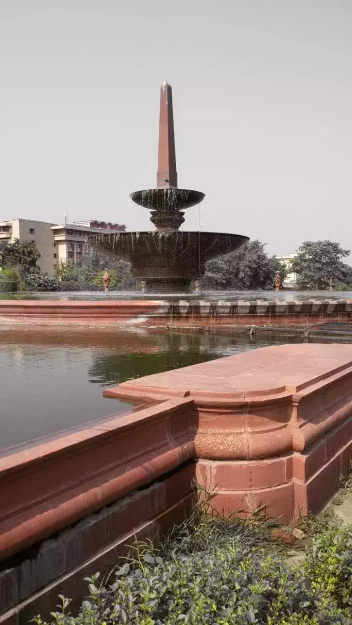 即使没有《吉檀迦利》这组诗句,每一个身临其境的过客都很难不被这溢满的酒杯造型所感动。喷水池内是常年不断的流水,如同满杯的美酒,不停涌动、不停流溢,象征着生命的涓涓不息;喷泉的造型又如同欢庆的烛台,是新德里主要轴线上的仪典式建筑小品;它们又是国王大道上鸽群饮水的源泉,是黎民众生的精神乐园。