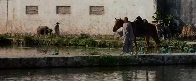 妇女浣纱,儿童戏水,男丁在农田劳作,风水在这里不仅是一个抽象的词语,而且是一幅安居乐业的水墨画。