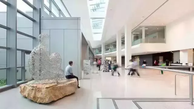收集了超过6400件艺术品,包括各种艺术海报和绘画,公众场所的雕塑,自然景色的图片和抽象的设计,覆盖了医院超过2300万平方英尺的地方。
