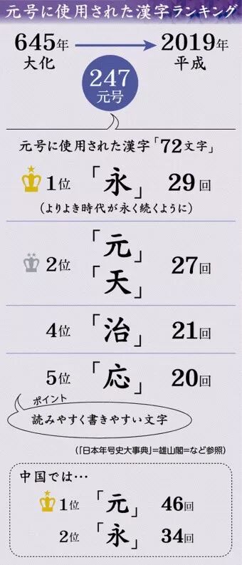 日本迄今使用过的年号,大多出自中国古典。其中引用较多的排名如下: