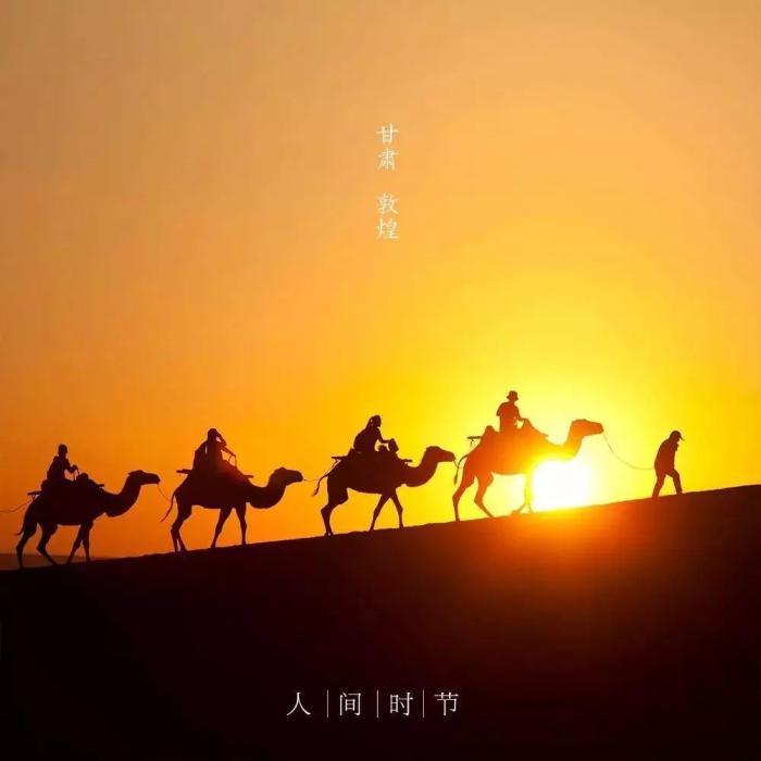 是风烟中的甘肃敦煌,一支驼队途径苍茫戈壁后留下的一梦大唐。