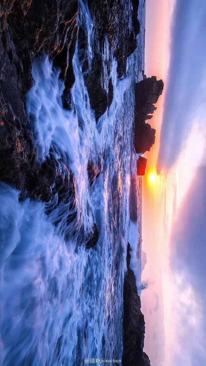 为了拍出朝霞和海浪的相依相伴,陈帆打着手电筒抹黑到达海边,偌大的海域仅他一人,耳畔是一阵一阵的水浪声。