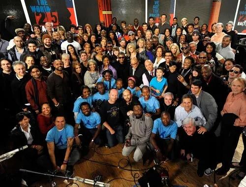 1985年1月28日,全美音乐奖颁奖典礼结束后,迈克尔·杰克逊召集了鲍勃·迪伦、保罗·西蒙等45位歌手来到位于洛杉矶的A&M录音室,花了一晚上时间录制出了这首歌。