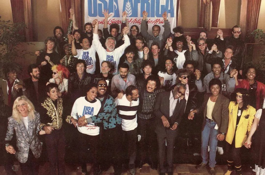 为了给非洲募集善款,歌手迈克尔·杰克逊与莱昂内尔·里奇一起创作了这首We Are The World(《天下一家》)。