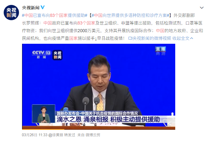 昨天央视发布一条消息,被无数网友点赞,中国已宣布向83个国家提供援助,并向世界提供多语种防控和诊疗方案。