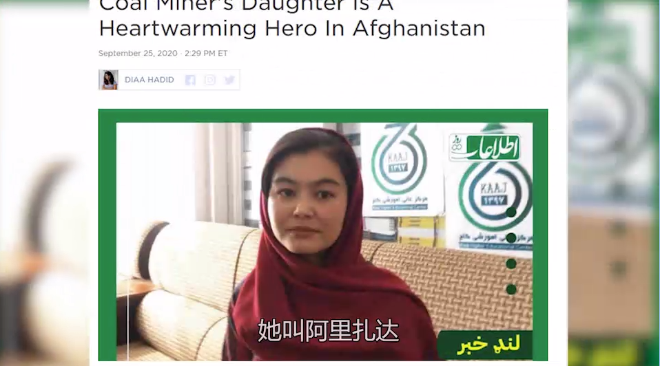 近日,阿富汗公布了全国大学入学考试成绩,其中矿工的女儿阿里扎达名列榜首。